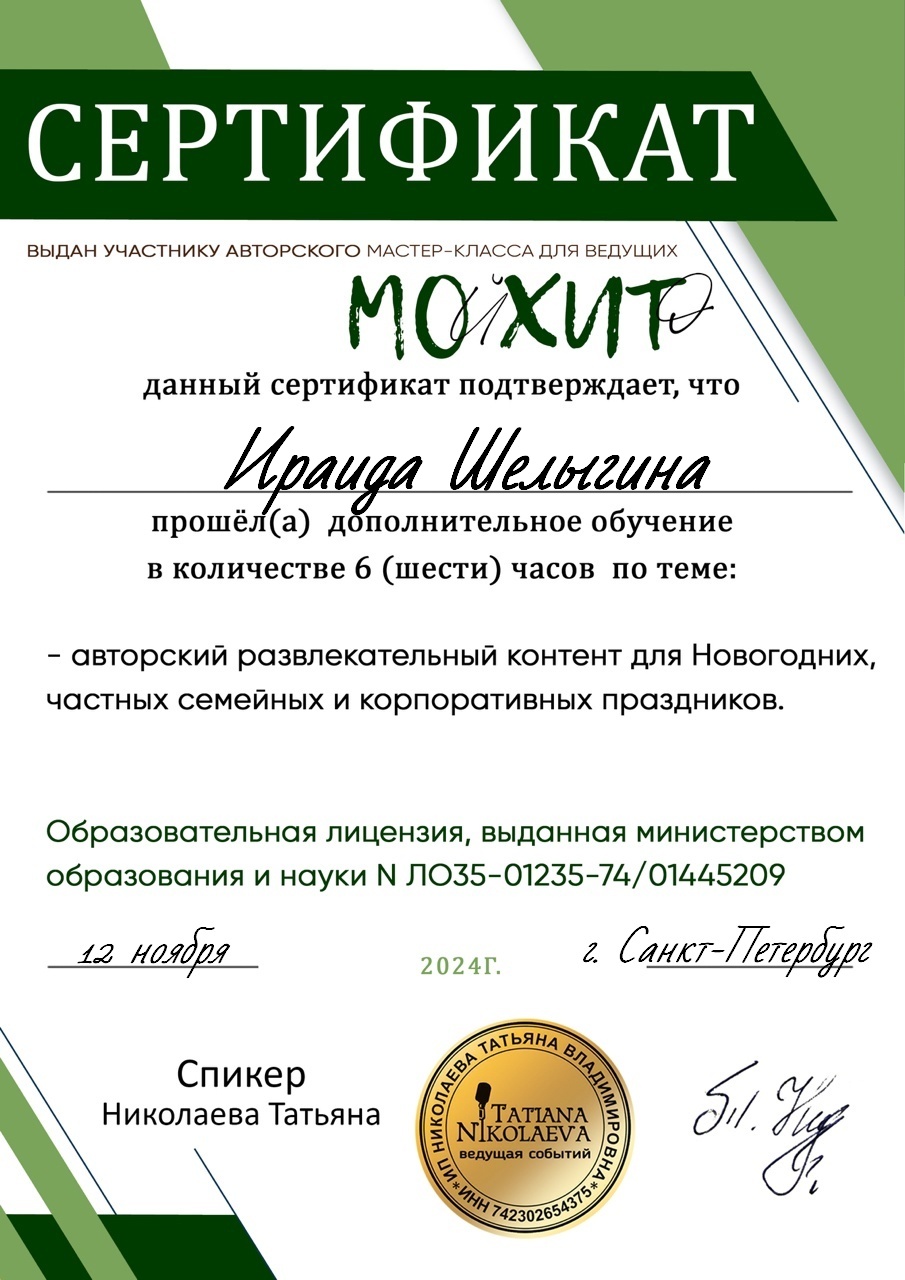 Давайте познакомимся! Меня зовут Ираида Шелыгина, я ведущая праздничных